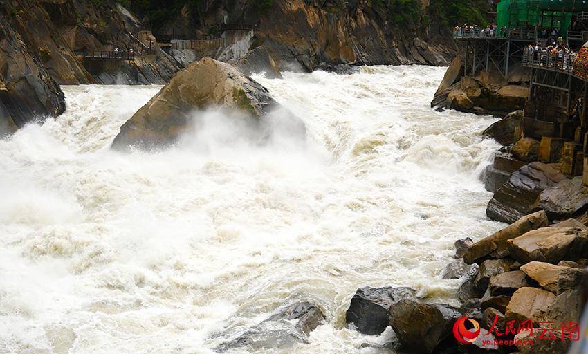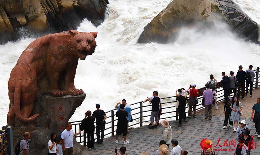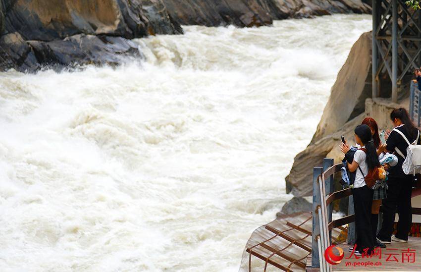 虎跳峡气势磅礴的峡谷景观吸引各地的游客前来观光打卡。人民网记者 庄志斌摄