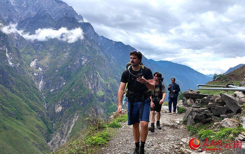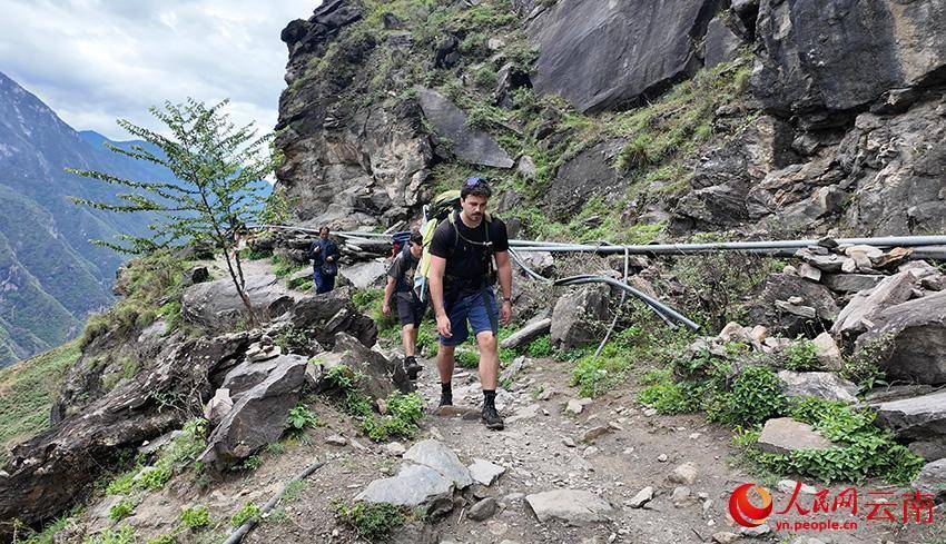外国游客在虎跳峡徒步。人民网记者 庄志斌摄