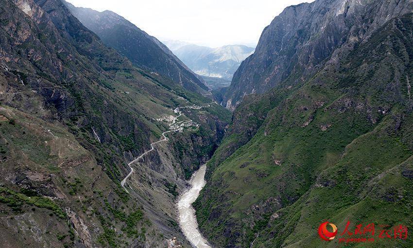 俯瞰金沙江。人民网记者 庄志斌摄人民网香格里拉7月3日电 (王娴、蔡树菁)随着雨季的到来,云南省迪庆藏族自治州香格里拉市虎跳峡景区展现出特有的气势磅礴的峡谷景观,吸引了全国各地的游客前来观光打卡。